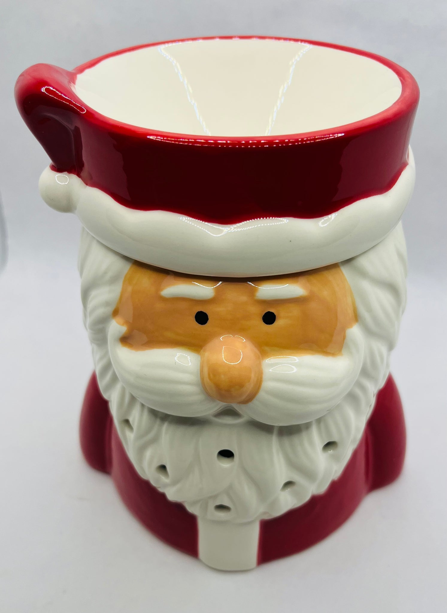 Welcome the holiday spirit with our St. Nick Fragrance Warmer, featuring a jolly Santa in his classic red suit and fluffy white beard. This cheerful warmer emits a warm, cozy glow when lit, adding festive charm to your décor—perfect for holiday gatherings or relaxing evenings by the fire.