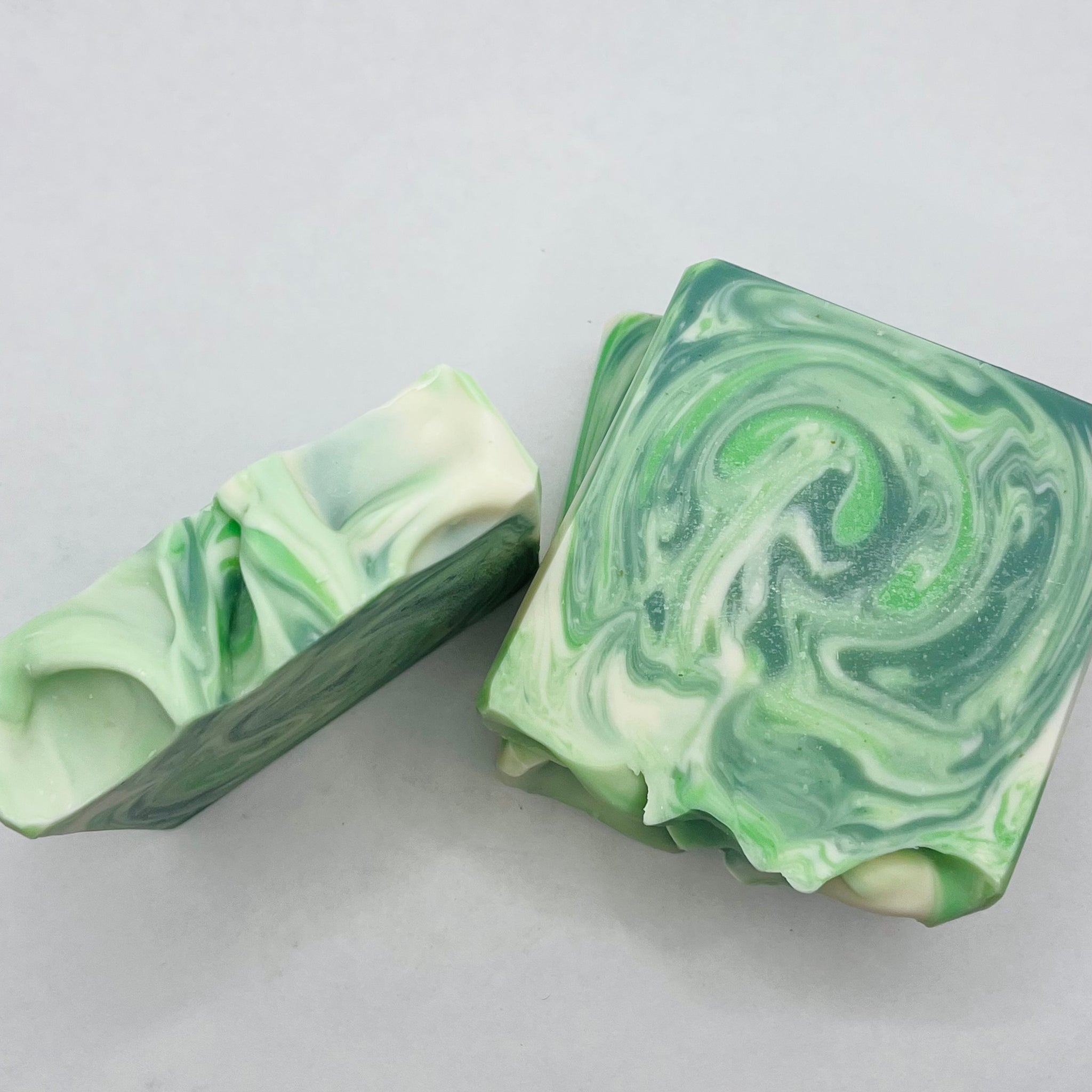 Our Cucumber Melon cold pressed soap is a beautiful green color scented with clean, crisp cucumber and fresh cut melon.