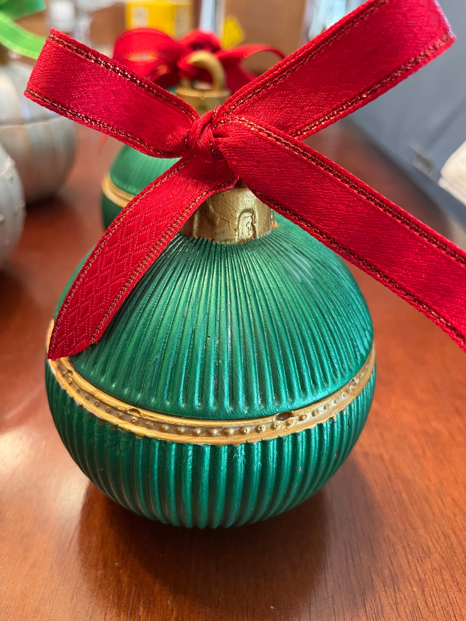 This listing is for one cement Christmas Ornament candle with a lid. We choose quality ingredients and carefully select the right packaging in order to ensure a quality product you will love and enjoy. Each product is handmade by our mother (Patti)/daughter (Jennifer) team. Our candles are labeled on the bottom with the scent and a candle warning label.