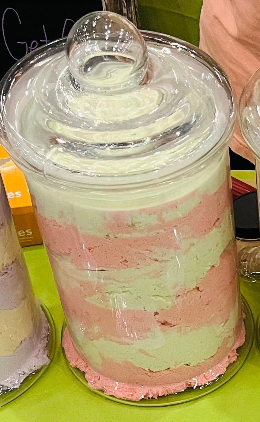 Black Raspberry and Vanilla Sugar Scrub smells so divine!! Smells of raspberries with bottom notes of musk and vanilla. It is a beautiful two toned product with green and pink colors swirled throughout.
