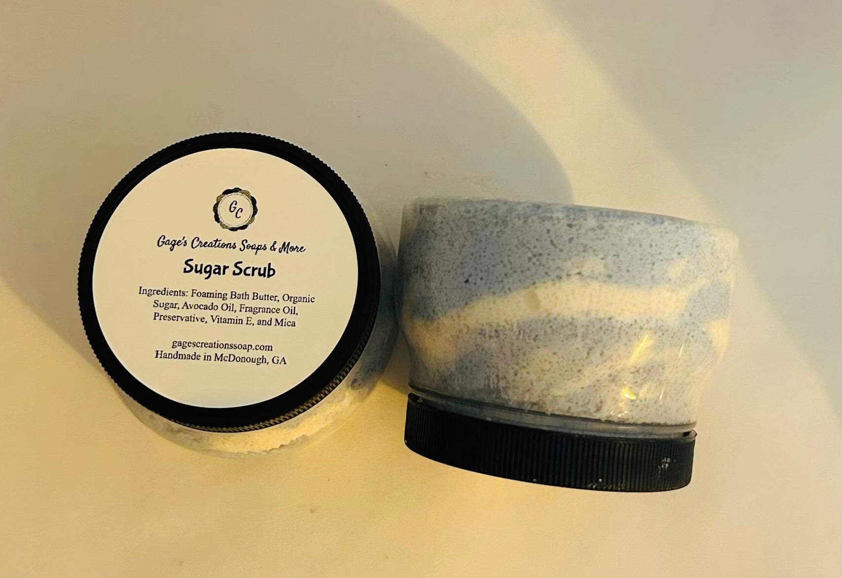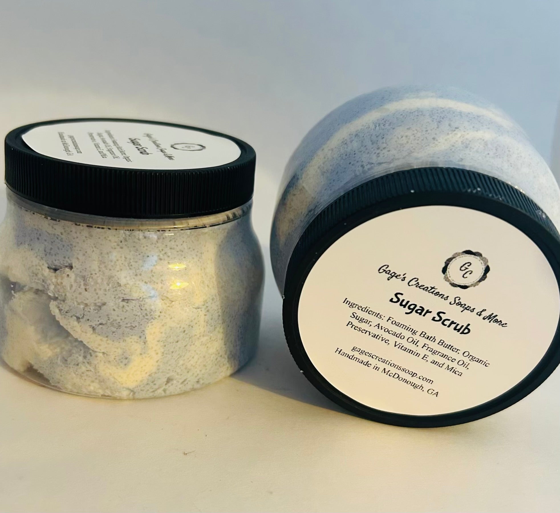 Foaming Bath Butter, Organic Sugar, Avocado Oil, Fragrance Oil, Preservative, and Vitamin E
